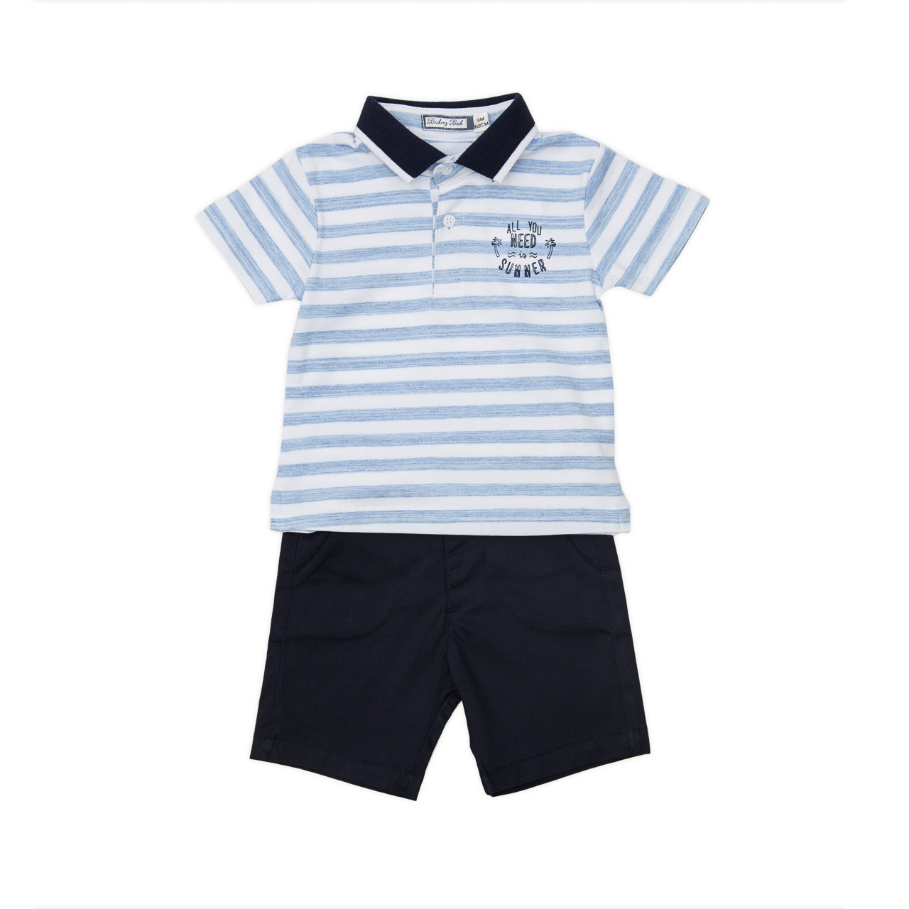 Set vara elegant bebe, contine tricou polo si pantaloni reglabili in talie, navy.Brand Babybol