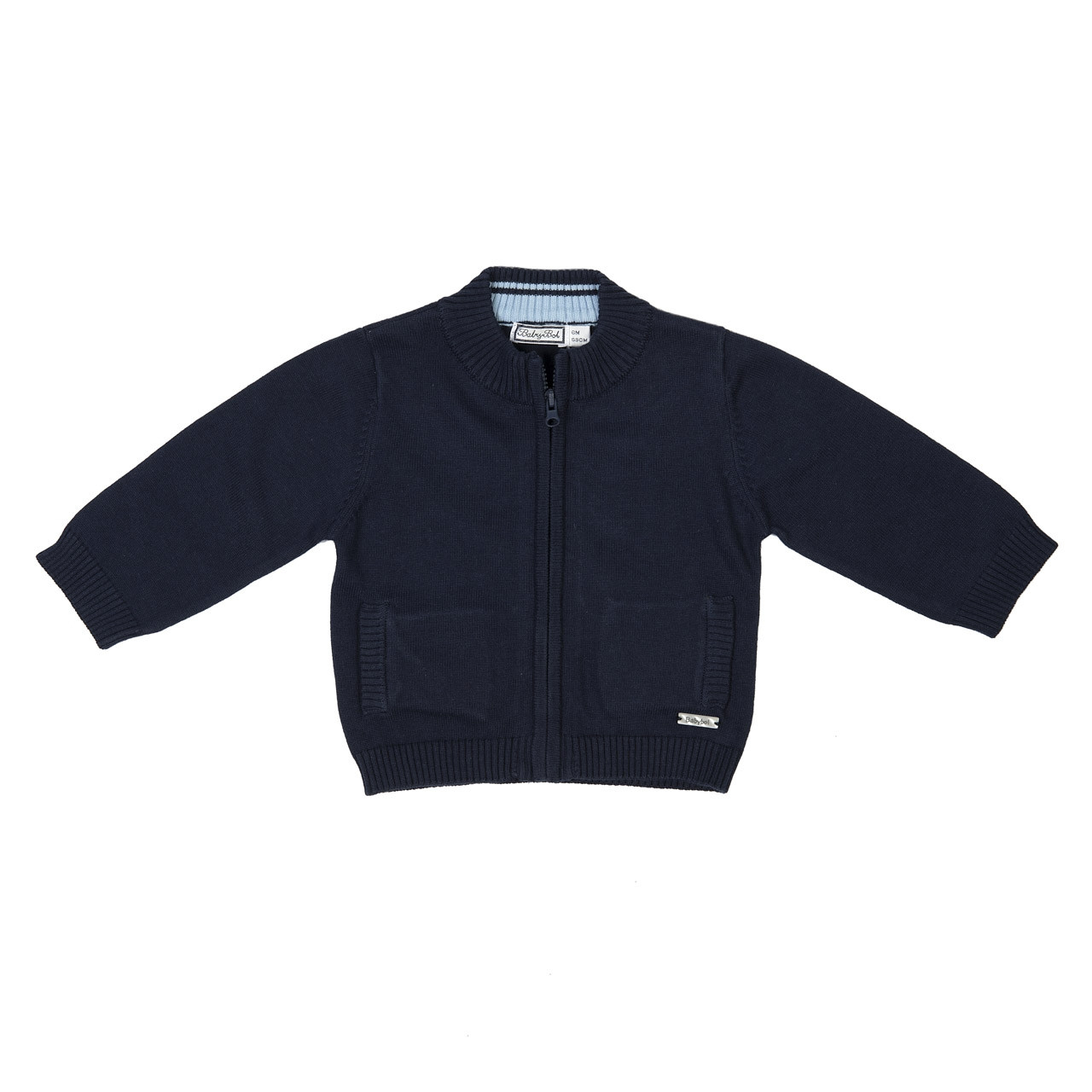 Cardigan din material tricotat , bumbac 100% pentru baieti, brand Babybol, inchidere usoara cu fermoar, buzunare laterale, logo aplicat la buzunar.Made Spania