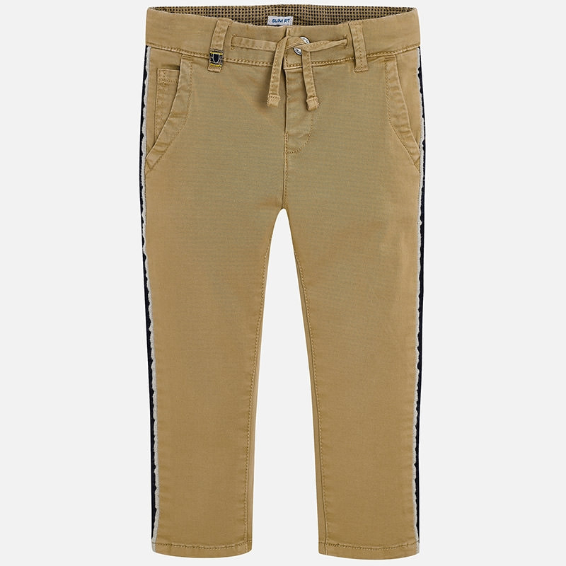 Pantalon slim fit bumbac cu benzi lateral , marimea se poate ajusta in talie cu ajutorul elasticului ce se regleaza cu un nasture .Un pantalon elegant sport .Made in Spania