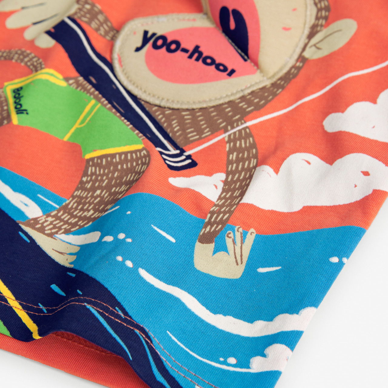 Tricou maneca scurta din bumbac better cotton, imprimeu vesel, portocaliu, 100%bumbac.
