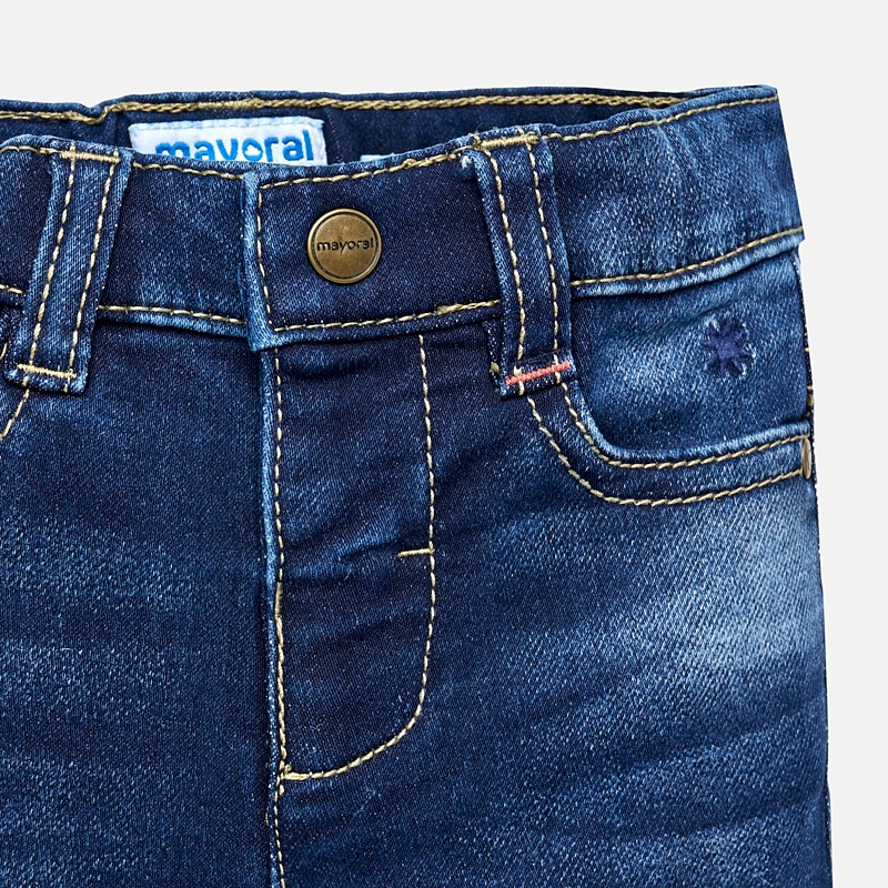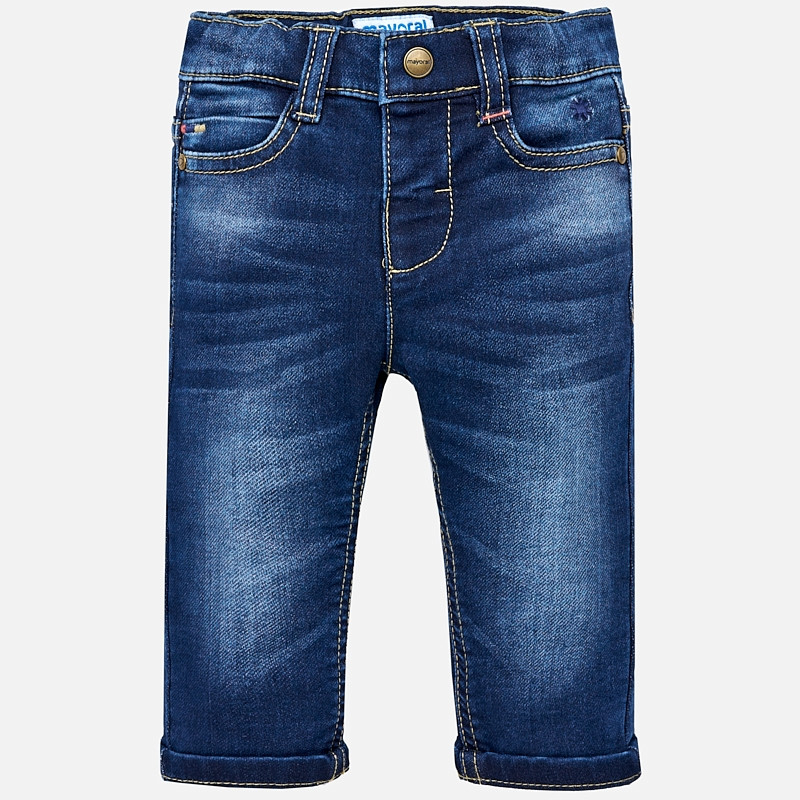 Jeansslim  fit baieti cu inchidere  frontala capsa , ajustabili in talie  cu nasture, aspect usor  uzati , elastici .