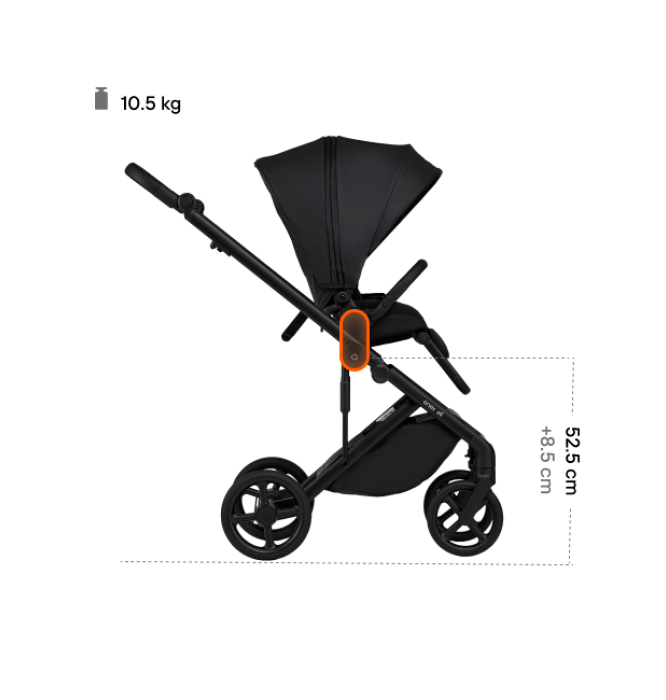Căruciorul este proiectat după principii ergonomice, acordând prioritate confortului și funcționalității atât părintelui, cât și bebelușului, pe tot parcursul călătoriei lor, de la vârsta de bebeluș până la patru ani.