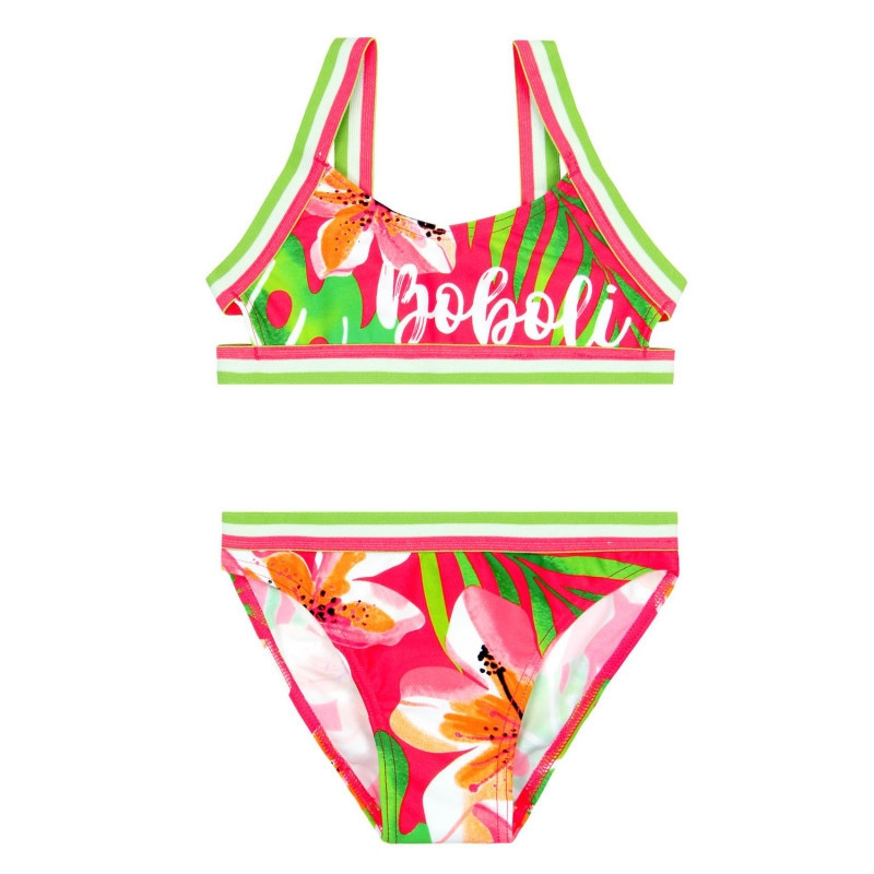 Costum baie fete, 2 piese , imprimeu floral, materila lycra xtra life, nu se decoloreaza, isi pastreaza forma.Marca Boboli. Marimi 12-16 ani.Design Spania