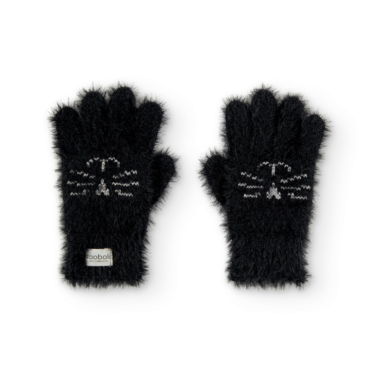 Manusi cu degete calduroase fetita din tricot, broderie mustati pisicuta, brand Boboli.