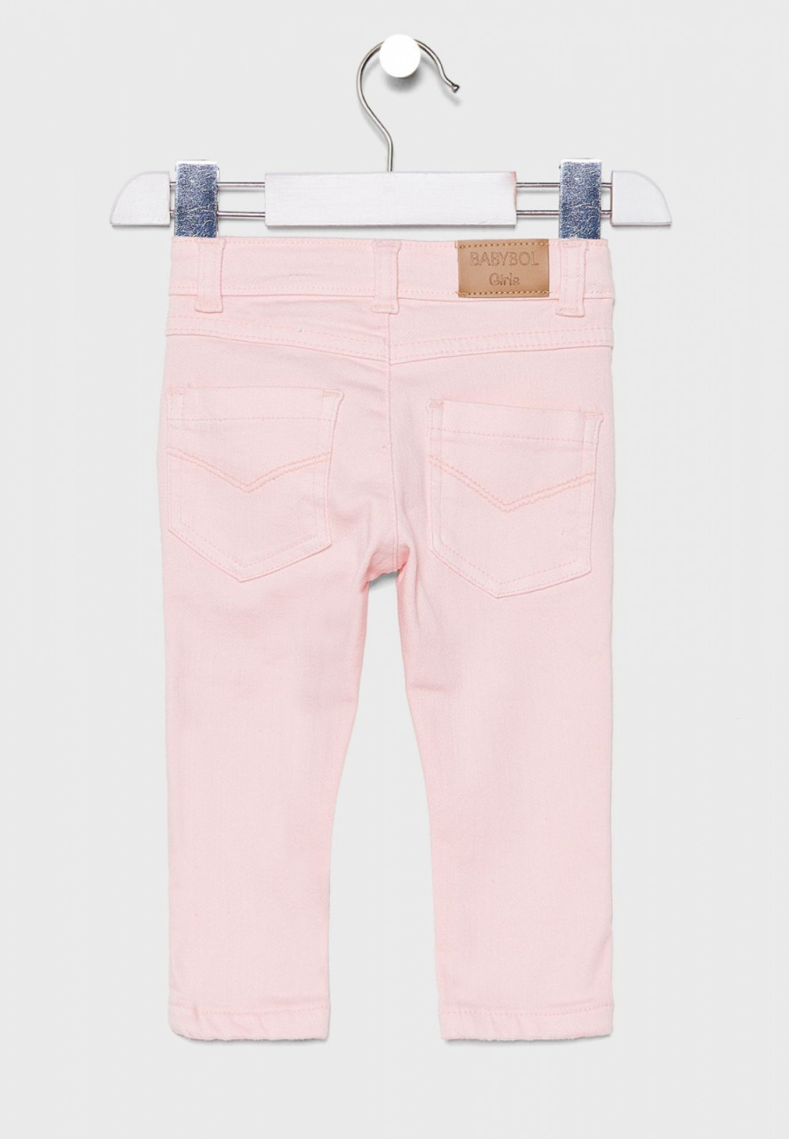 Pantalon jeans fetite din material bumbac , strech, soft , ajustabil in talie, buzunare fata si spate, inchidere cu fermoar si buton,culoare roz.