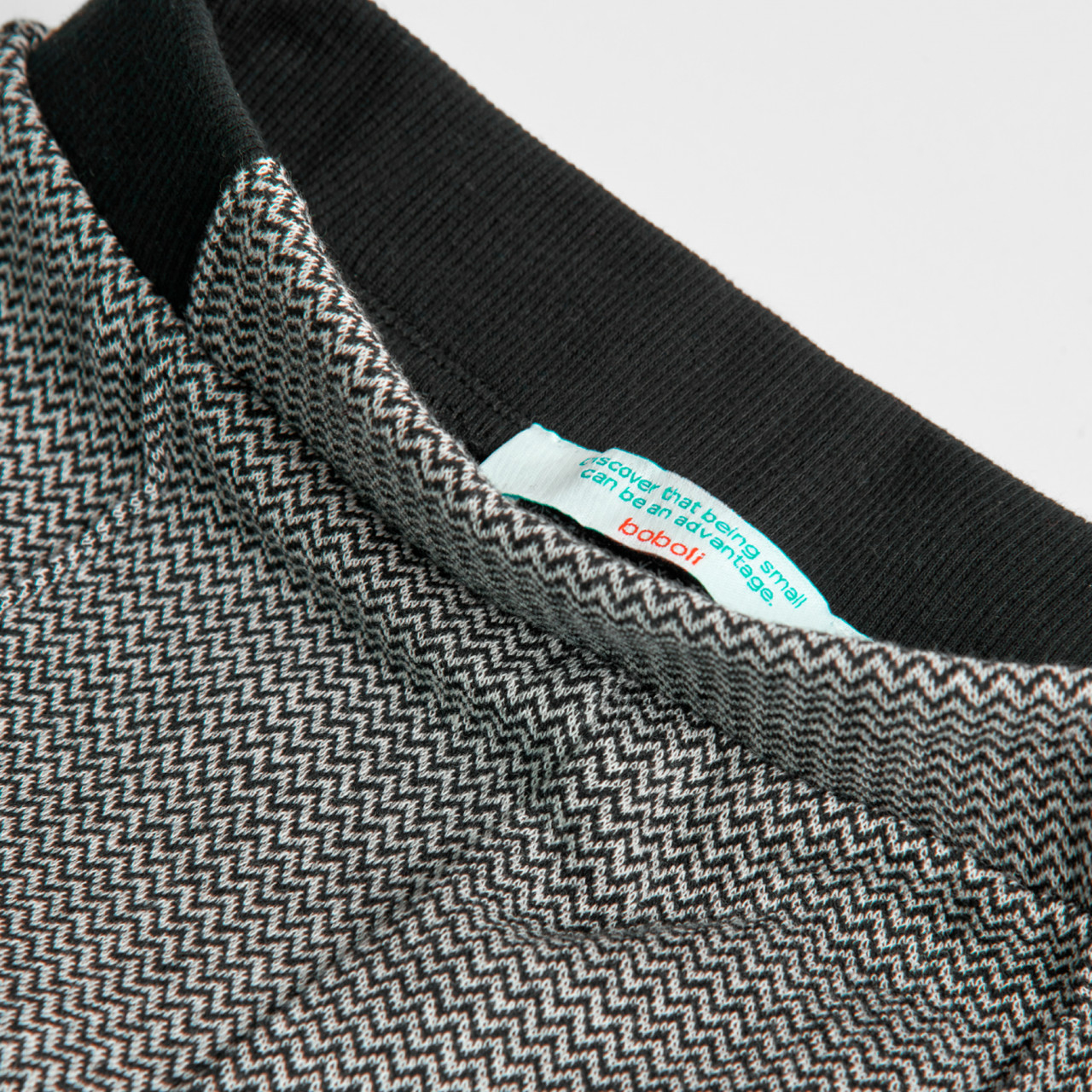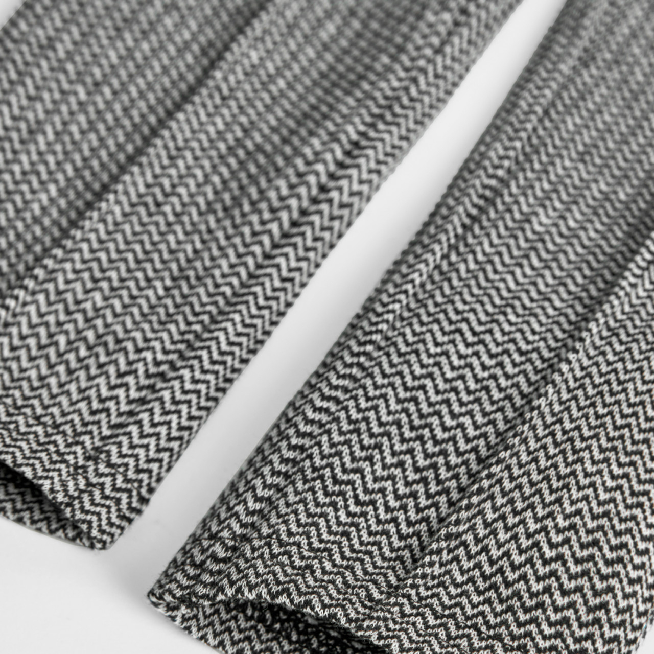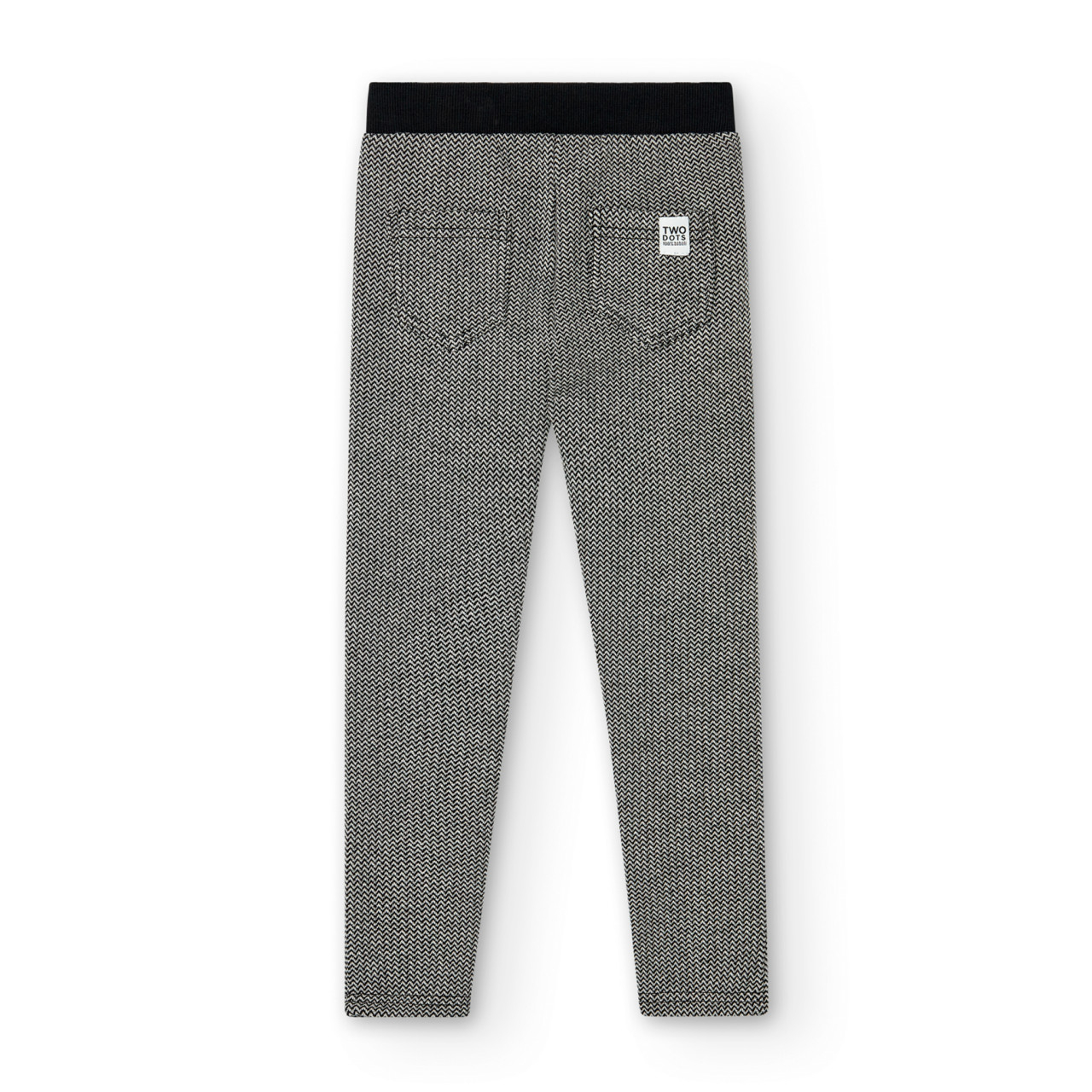Pantaloni tricotați elastici cu design în formă de spinare în alb și negru pentru fete. Pantalonii au talie cu nervuri negre și buzunare la spate. Disponibili de la mărimea 4 ani până la 16 ani.