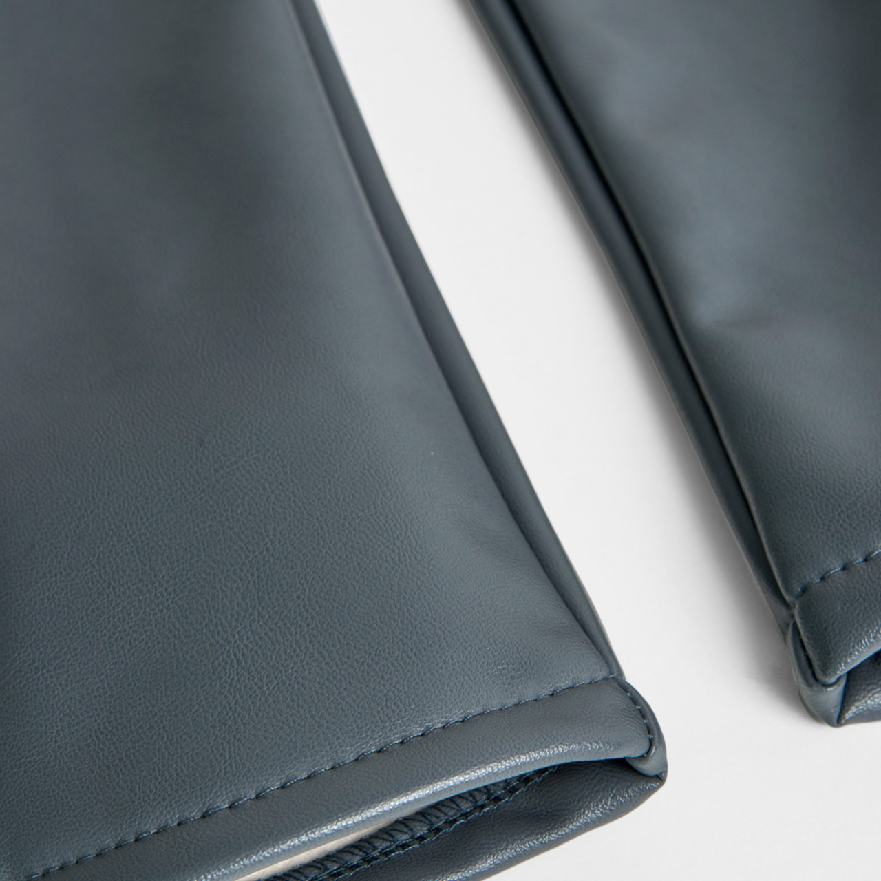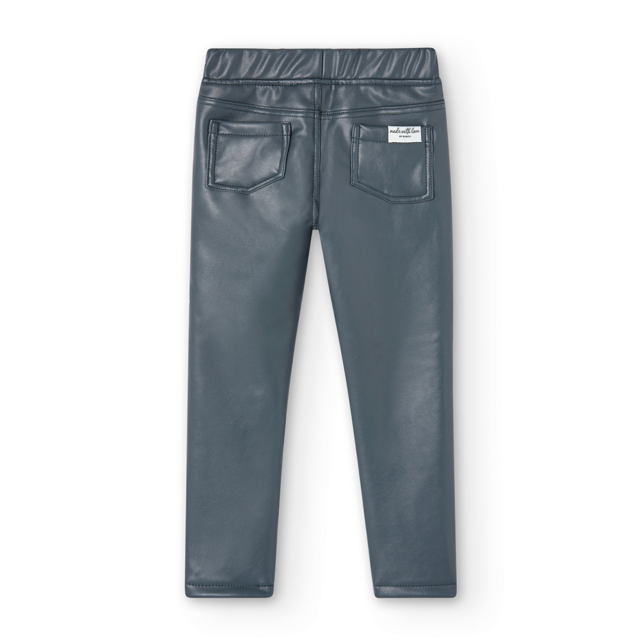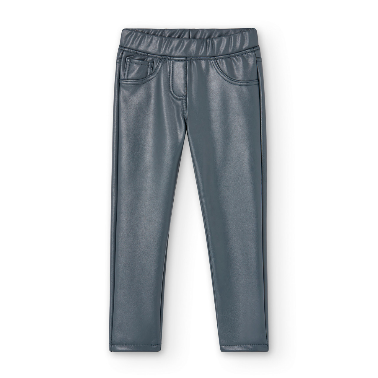 Pantaloni fete din piele ecologica, model tip colant, purin vatuit la interior, gri, banda elastica in talie.
