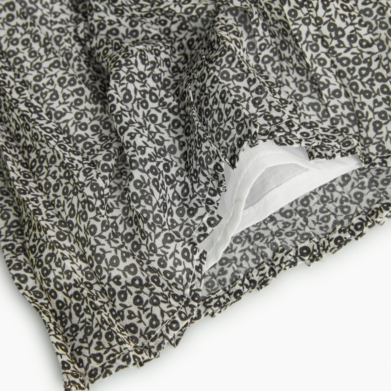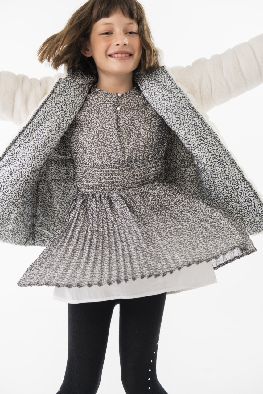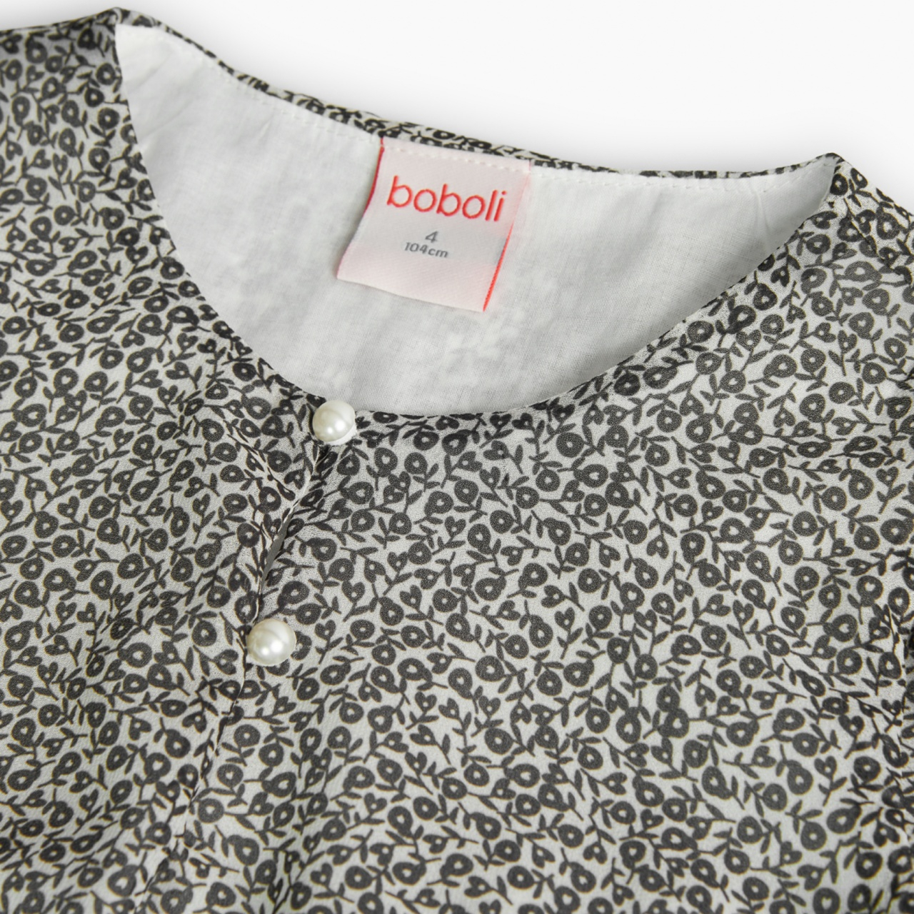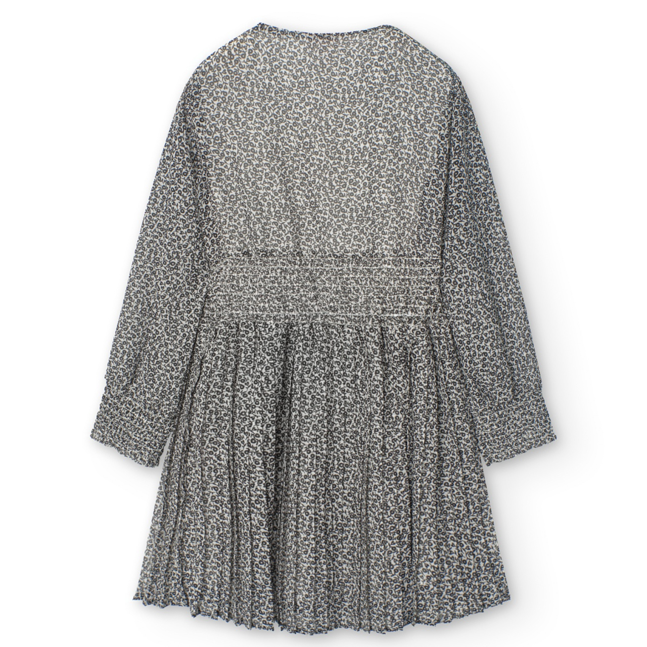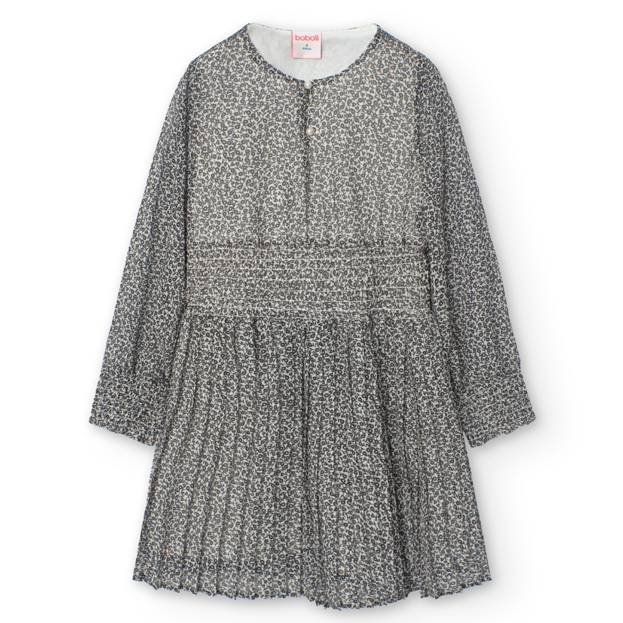 Rochie fete 4-16 ani, chifon, plisata, imprimeu flori negre, maneca lunga, brand Boboli