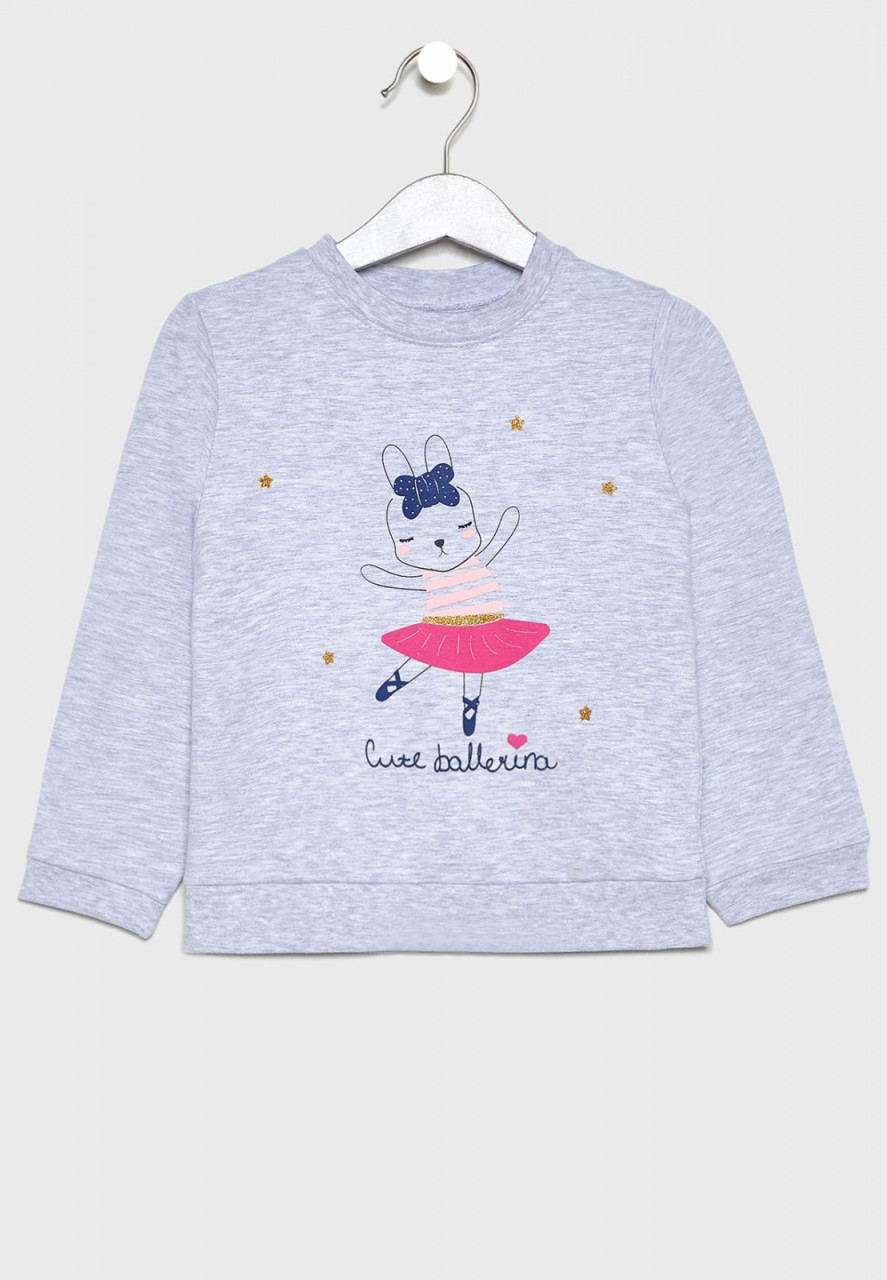 Trening bumbac pentru fetite format din 2 piese, bluza cu maneca lunga , imprimeu fetita, guler rotung si pantalon bleumarin , siret in talie , manseta elastica, vatuit la interior. Brand Babybol.