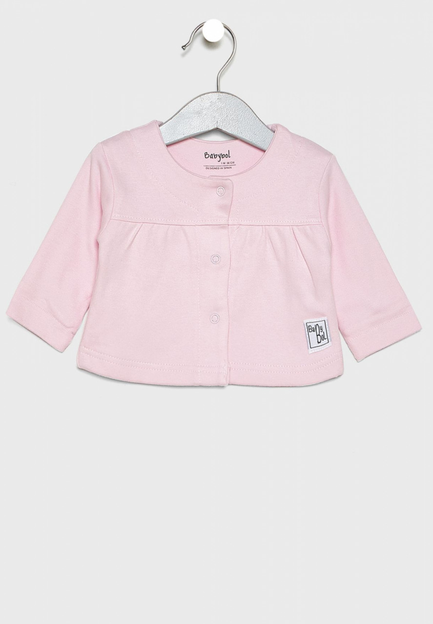 *cardigan cu maneca lunga , culoare roz, inchidere cu capse