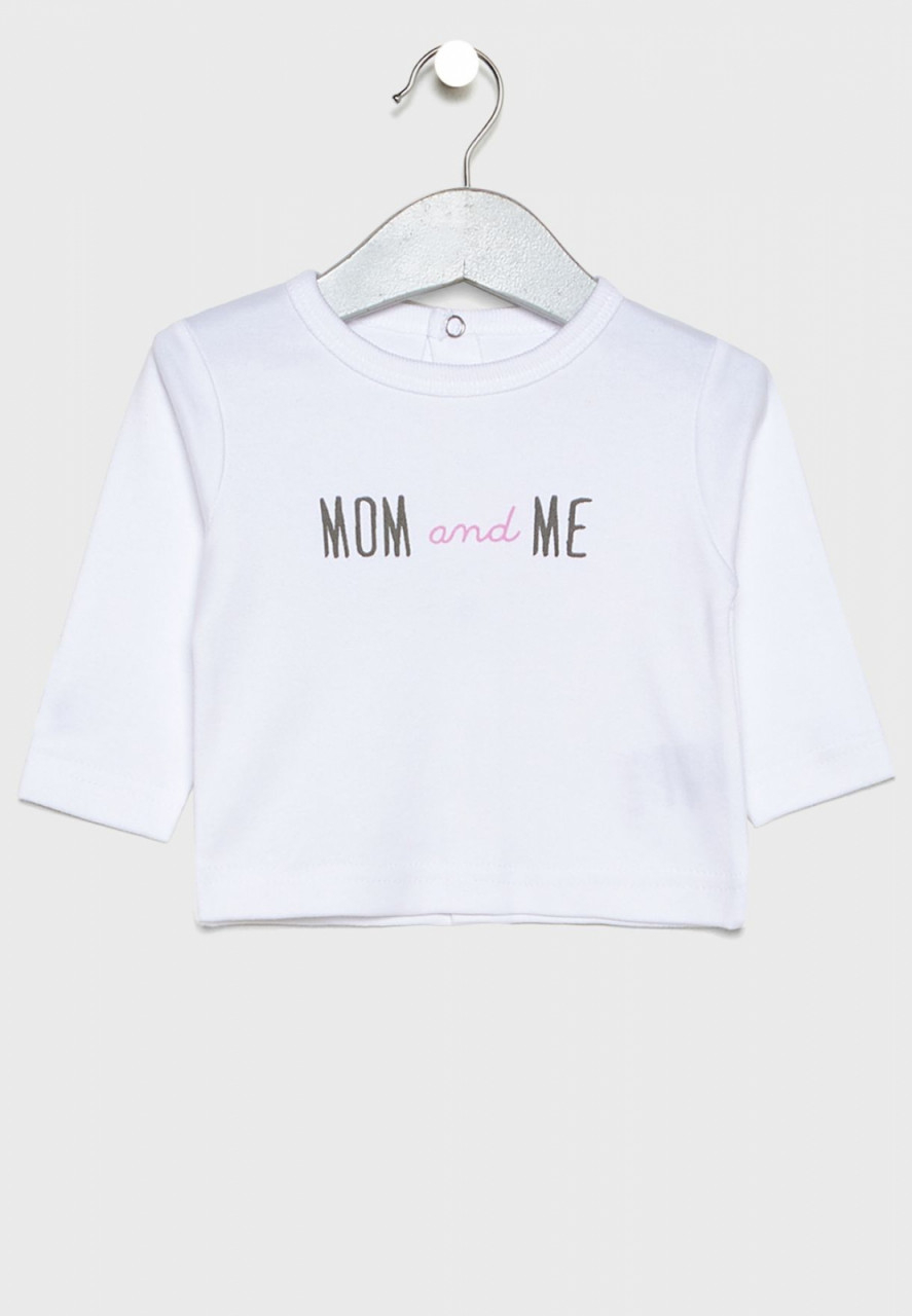 *tricou cu maneca lunga, print mom&me, alb, inchidere cu capse pe spate
