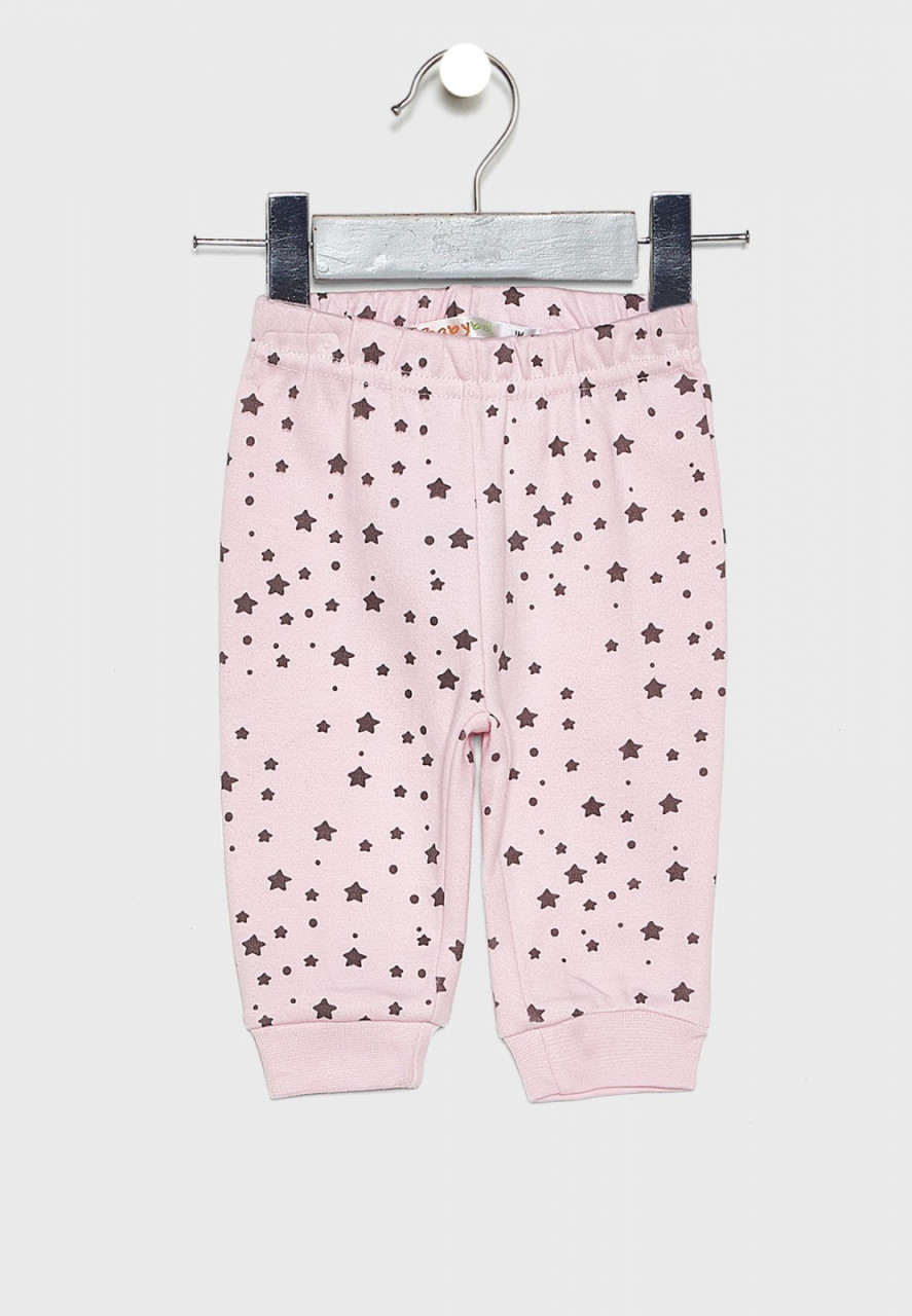 *pantalon lung , elastic in talie, roz cu stelute