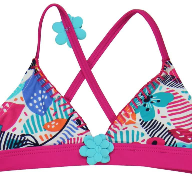 Costum baie fete Boboli cu flori din lycra extra life , material rezistent, isi mentine culoarea si elasticitatea.