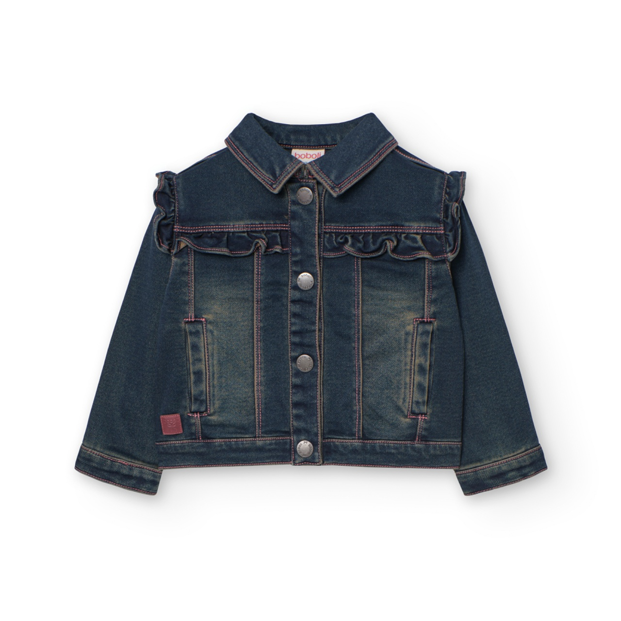 Geaca blugi fetita 12 luni -8 ani, volanase, buzunare laterale, inchidere cu capse, dark denim, brand Boboli.