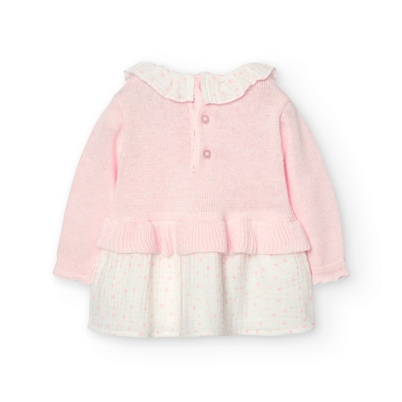 Rochie superba pentru bebeluse combinatie de tricot si fustita din muselina cu stelute roz, colectia CHIC Boboli.