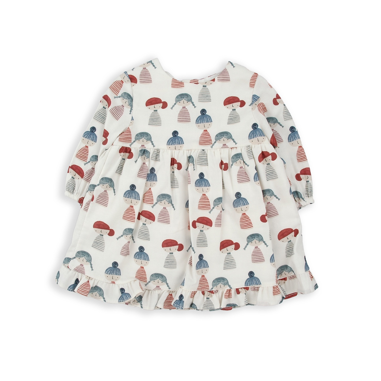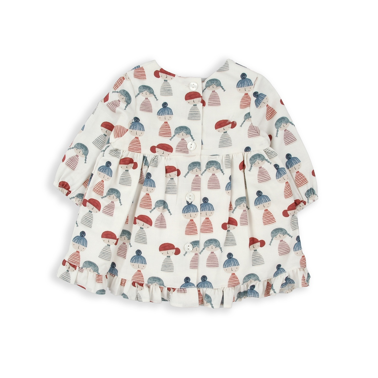 Rochita bebe fetita cu maneca lunga, bumbac certificat oeko-tex , imprimeu fetite, captuseala bumbac, brand Babybol.