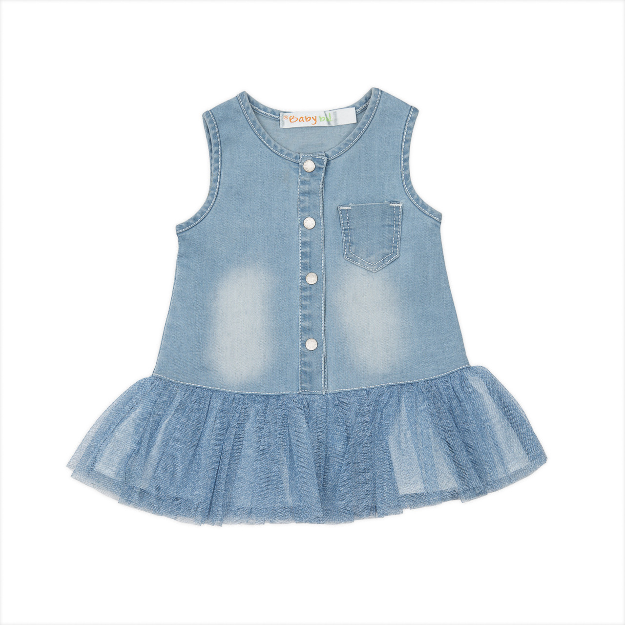 Rochita din material denim de culoare deschisa, capse pe fata, fusta din tulle . Brand BabybolMade Spania