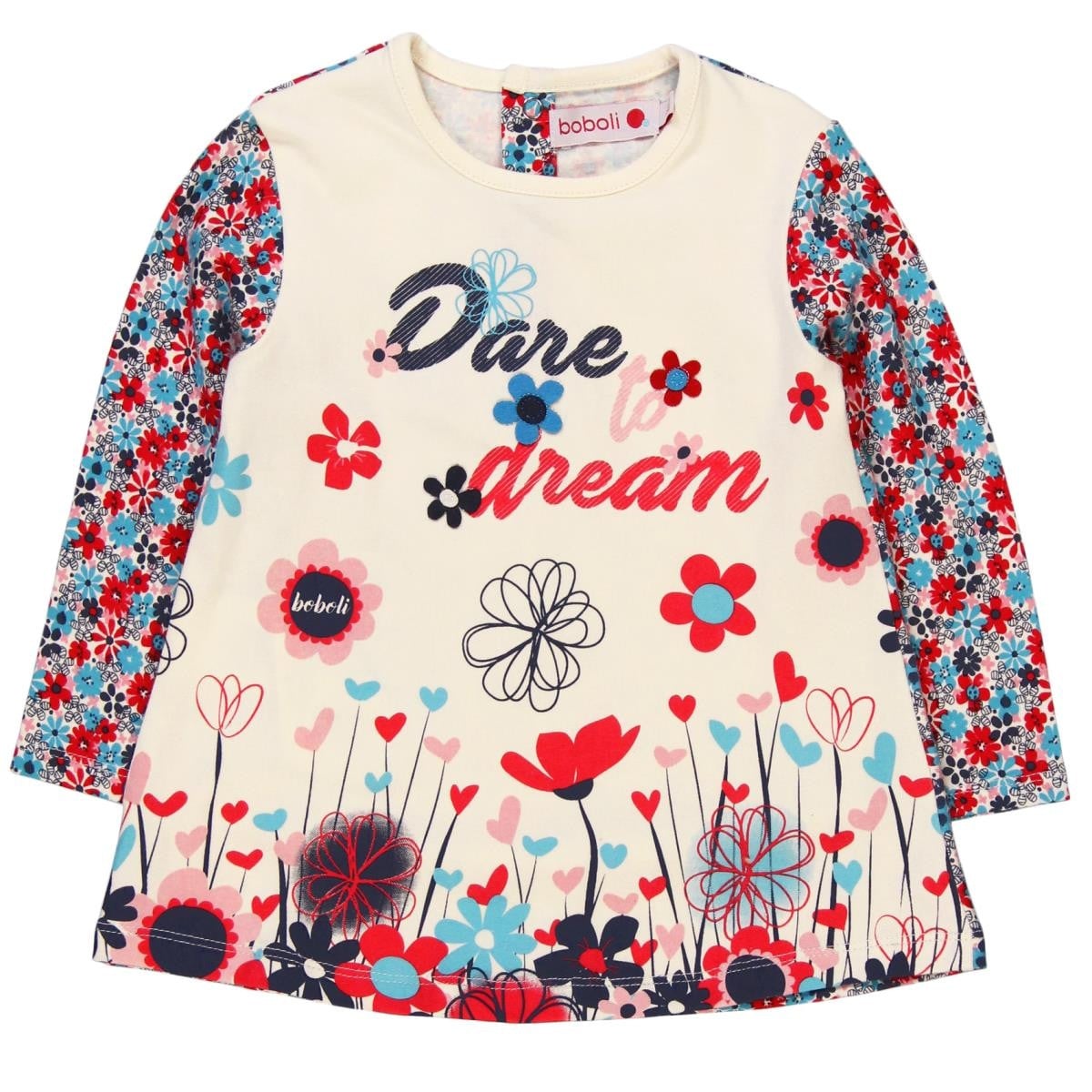 Rochita Boboli cu flori imprimate pe maneci si spate, pe fata diverse printuri in marimi si culori diferite.