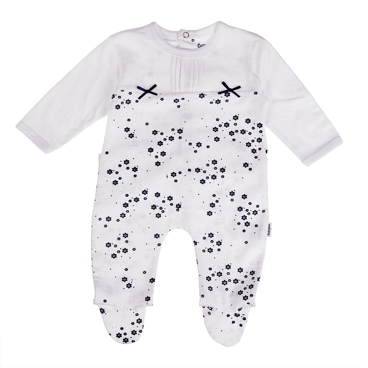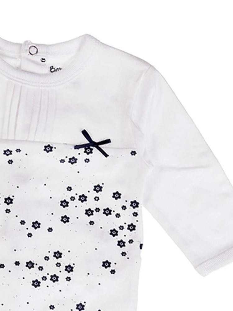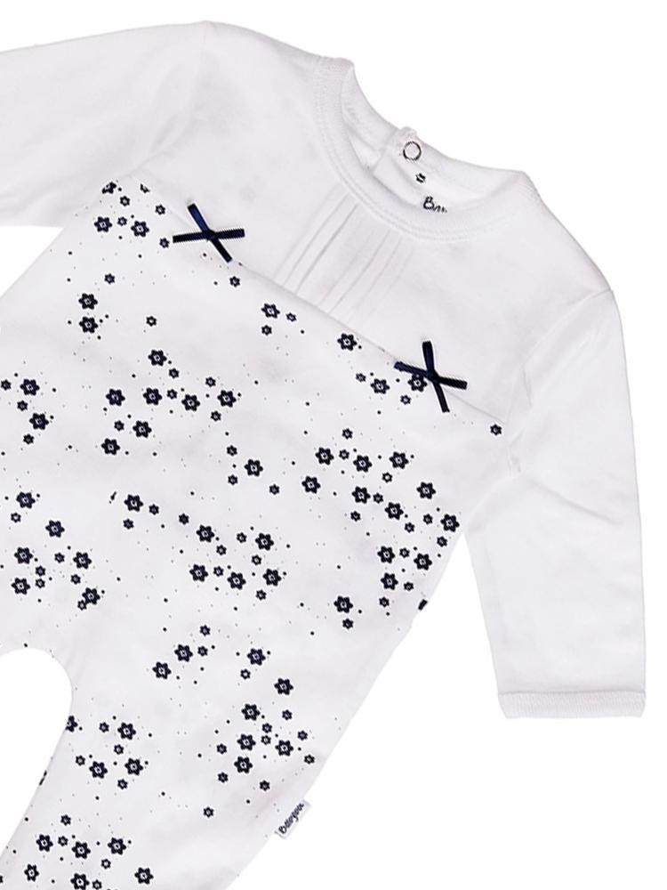 Aceasta salopeta superba pentru bebelusi este confectionata din bumbac moale si confortabil, flori delicate bleumarin imprimate pe toata suprafata insotite de 2 fundite pe fata, inchidere pe spate cu capse. Perfecta pentru orice ocazie . Salopeta vine ambalata in cutia BABYBOL.