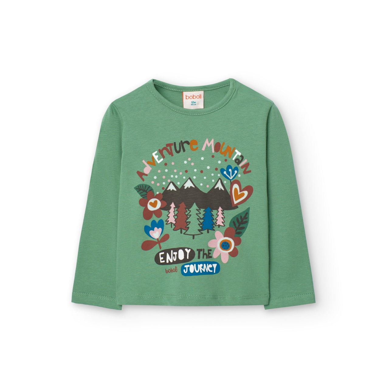 Tricou maneca lunga fete, bumbac better cotton, imprimeu braduti, verde, brand Boboli