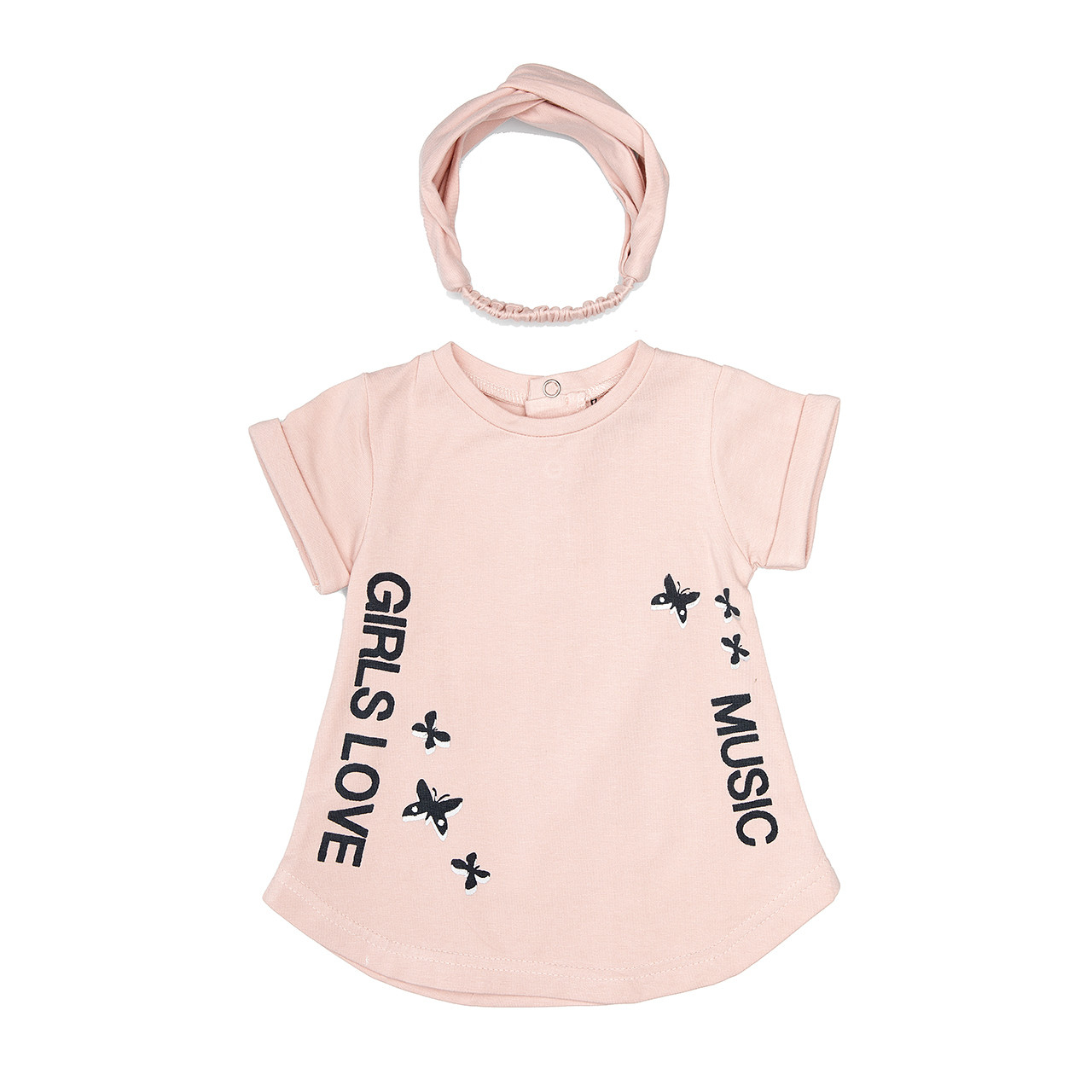 Rochita cu maneca scurta din bumbac moale de cea mai buna calitate! Rochita vine insotita de o bandana pentru cap in aceeasi culoare. O tinuta casual cat si un cadou perfect. Produsul are umeras Babybol.Made Spania
