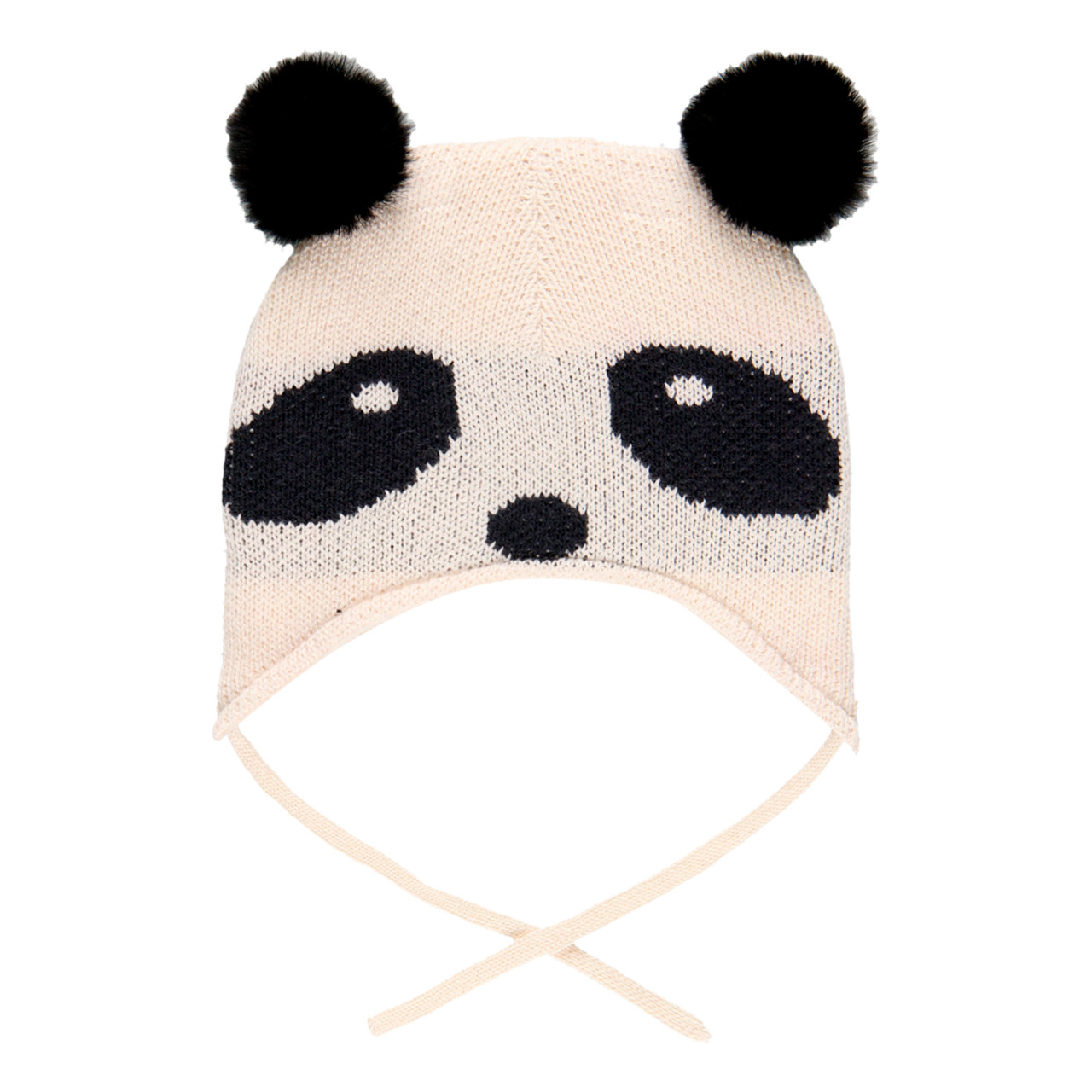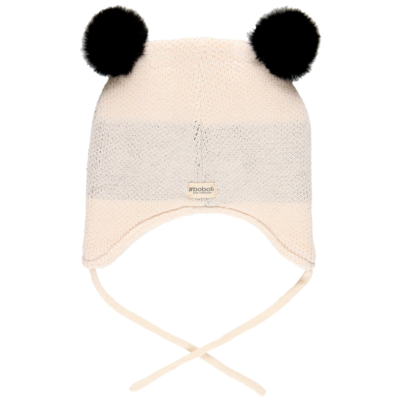 Caciula bebe baiat cu sbur de legat din tricot,model panda, captuseala fleece, brand Boboli.