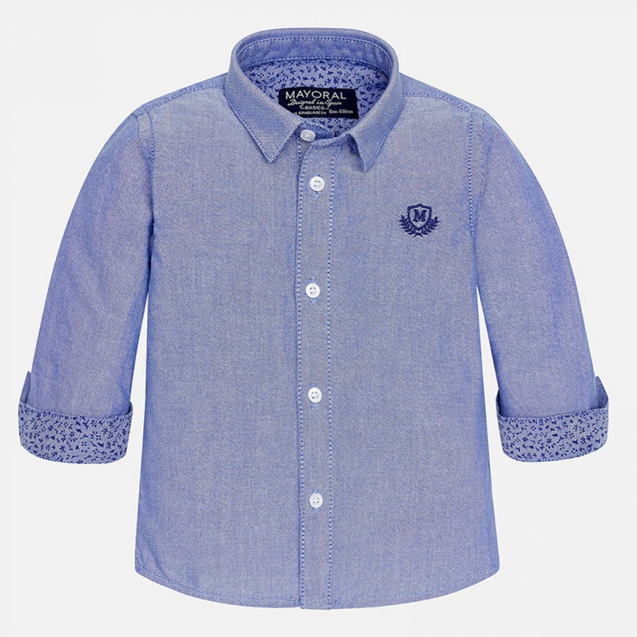Camasa bebe baiat de la Mayoral bleu cu maneca lunga, din bumbac, inchidere pe nasturi in fata si la mansete
