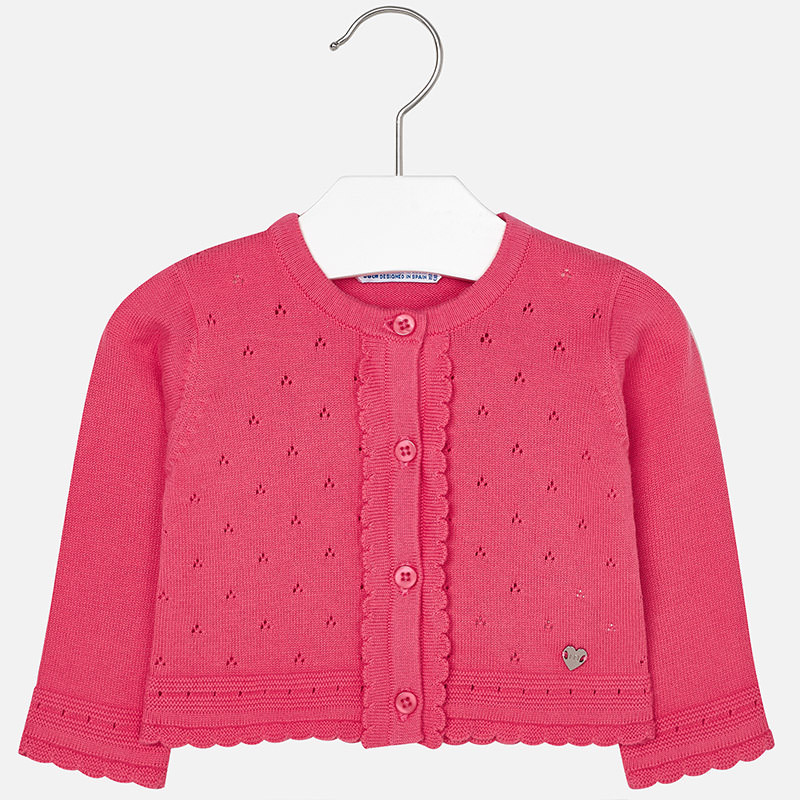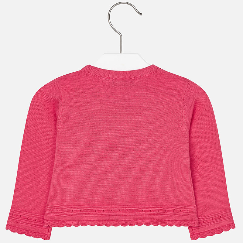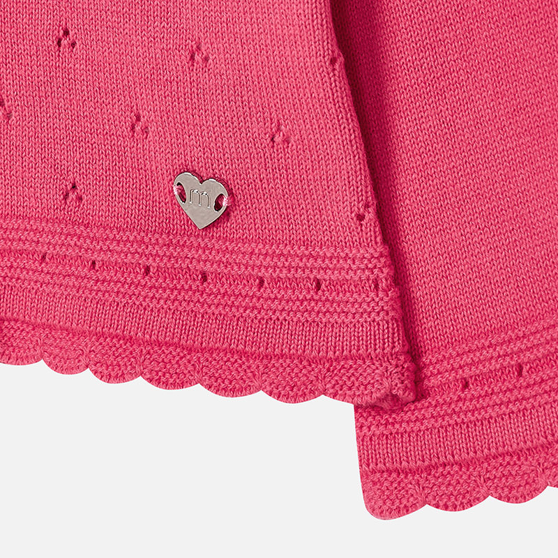 Cardigan tricotat cu maneca lunga pentru fetite, inchidere in nasturi in culoare, model pe fata.