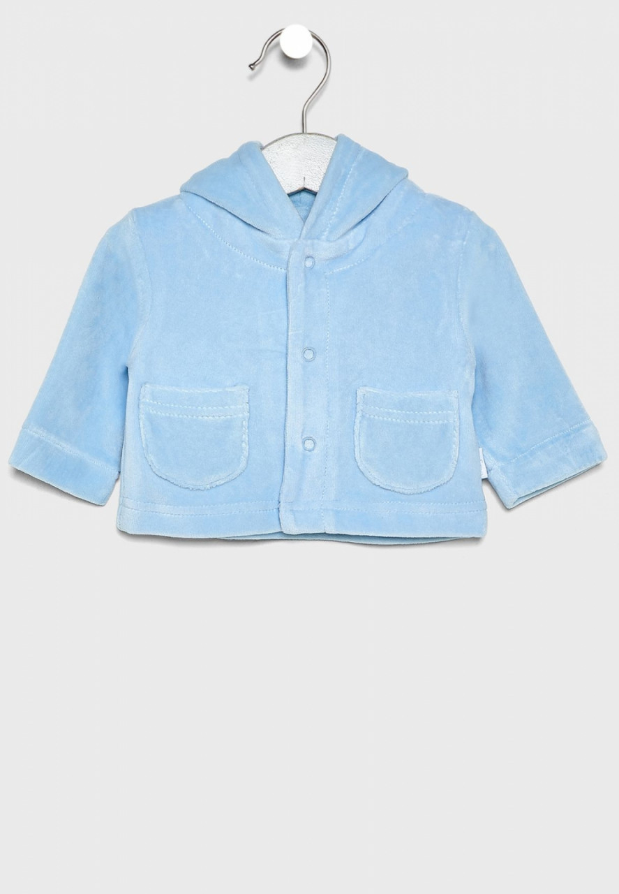 Costumas pentru nou nascut din catifea format din jacheta cu gluga , tricou cu maneca lunga si pantalon lung. Material catifelat , confortabil.