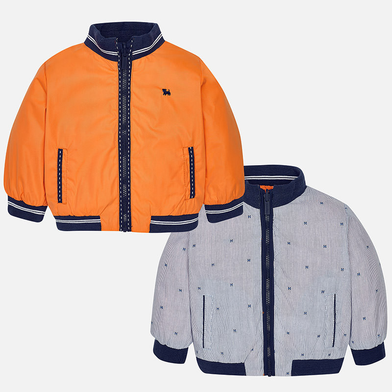 Geaca baiat reversibila, portocalie , mansete elastice, buzunare laterale.Made Spania