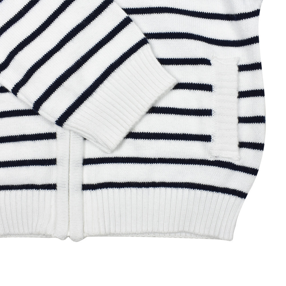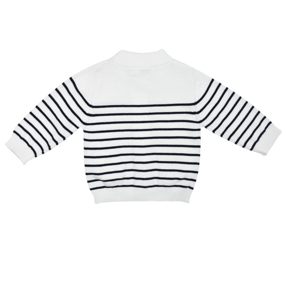 Pulover tricotat din bumbac 100% pentru bebe baiat. Un pulover cu inchidere cu fermoar, buzunare laterale, o banda elastica în jurul gâtului, mansete la mâneci si la talie. Articol elegant si practic nu trebuie sa lipseasca din garderoba copiilor. Completeaza perfect o tinuta cu pantaloni si camasa.