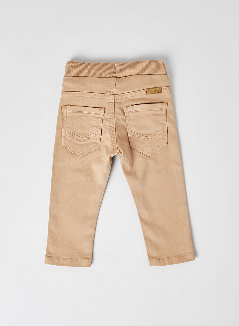 Pantalon jeans Babybol, strech ,bej pentru baieti, banda elastica si siret in talie, material moale, regular fit. Spalati conform etichetei.