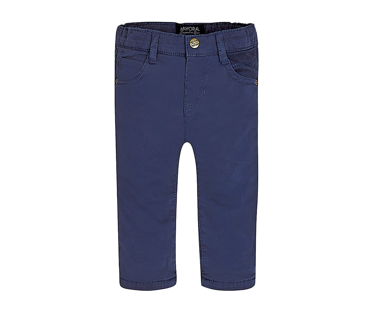 Pantaloni de la Mayoral pentru baieti, culoare albastru, dublati pe imterior cu bumbac, reglabil in talie cu nasturi, Made Spania