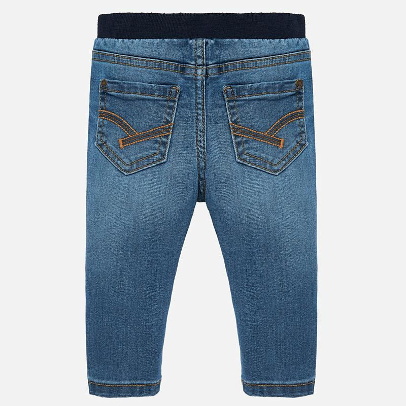 Pantaloni pentru bebe baiat din linia clasica si croiala dreapta (Regular fit). Model din colectia de articole de imbracaminte clasice cu design basic, ideal pentru completarea oricarei tinute. Inchidere prin capsa pe partea frontala. Talie reglabila. Material modern din denim cu efect de spalare si finisare de uzura. Buzunare functionale pe partea frontala si posterioara.