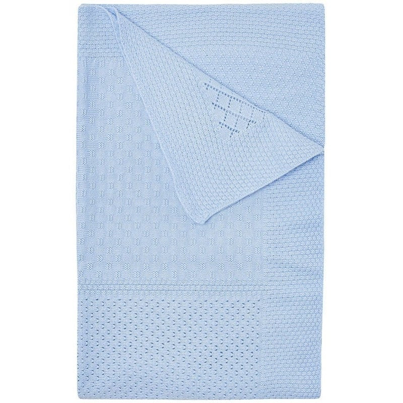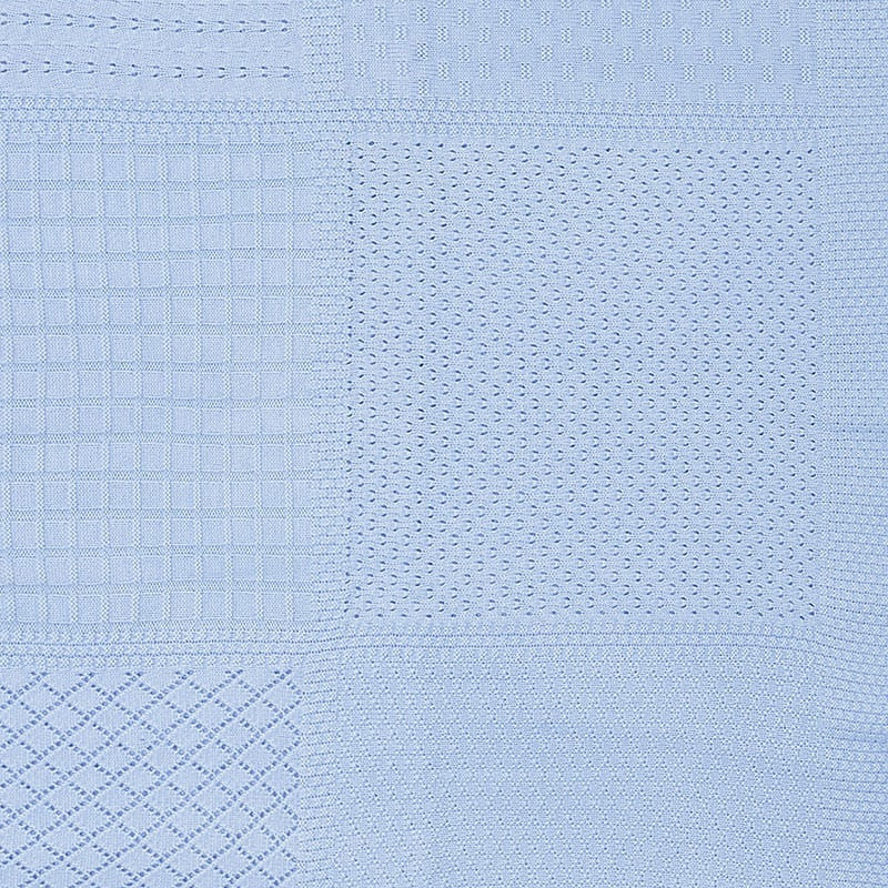 Paturica tricotata pentru bebelusi blue , dimensiune mare 100X80cm, un caroiaj format din diverse modele pe toata suprafata , material fluid , moale si placut la atingere. Ideal atat pentru camera cat si carucior.