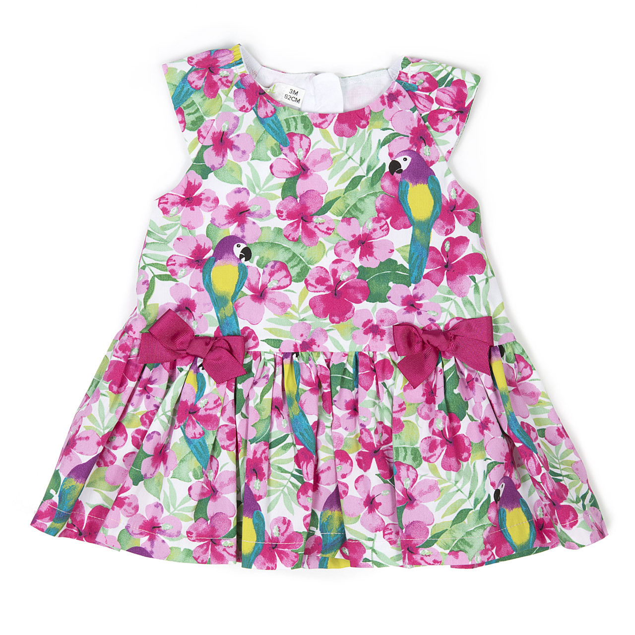 Rochie eleganta de vara pentru fetite de la Babybol Barcelona, imprimeu floral cu fundite aplicate, maneca scurta, material 100% bumbac.Made Spania