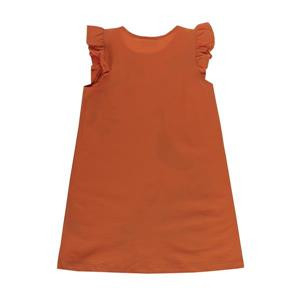 Rochie lejera de vara pentru fetite, imprimeu un superb paun cu coada gliterara, portocalie,maneca scurta tip volanas. Compozitie 95%bumbac, 5% elastan Made Spania Brand UBS2 Barcelona