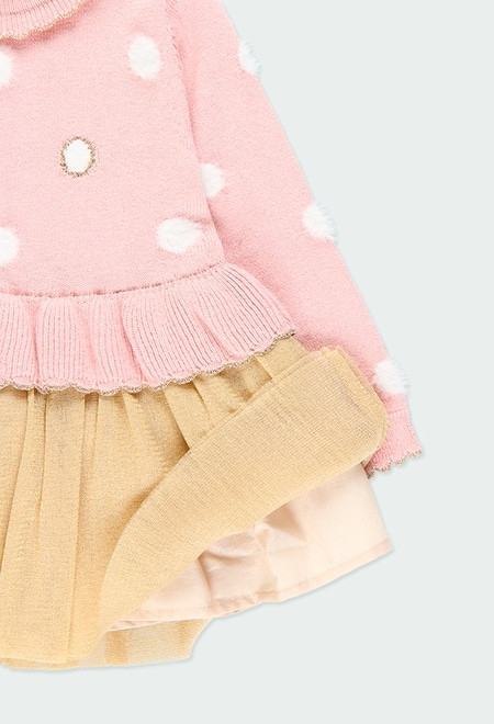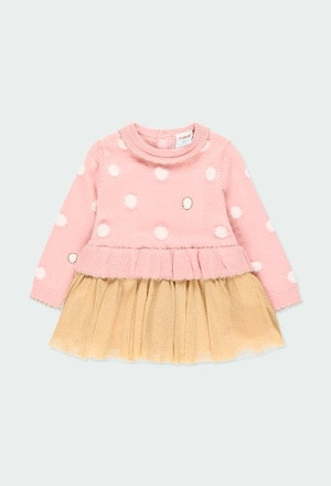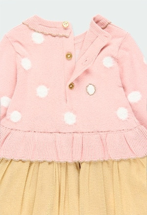 Rochie eleganta gama Chic fetite din tricot fin la partea superioara si fusta tulle aurie, inchidere cu nasturei pe spate.Brand Boboli Spania