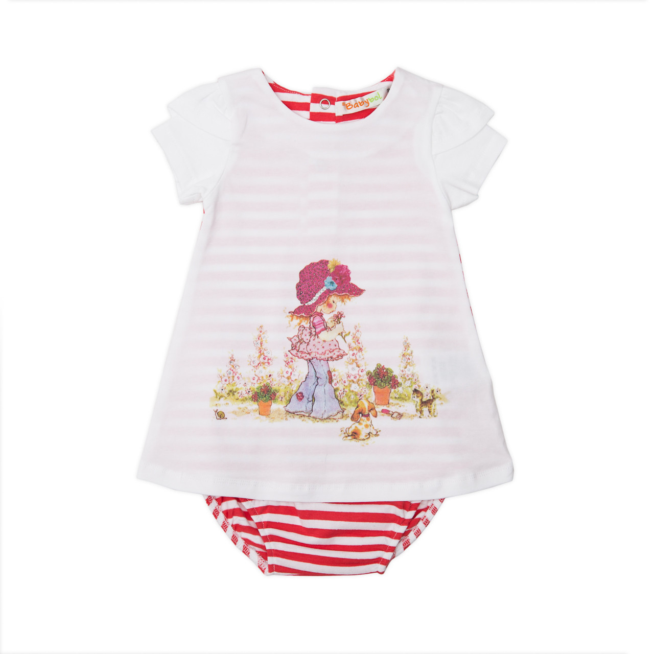 Rochita cu maneca scurta pentru fetita bebe cu chilotel din bumbac moale,foarte confortabil.Brand BabybolMade Spania