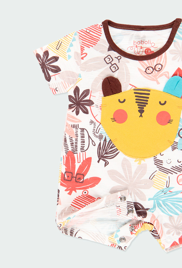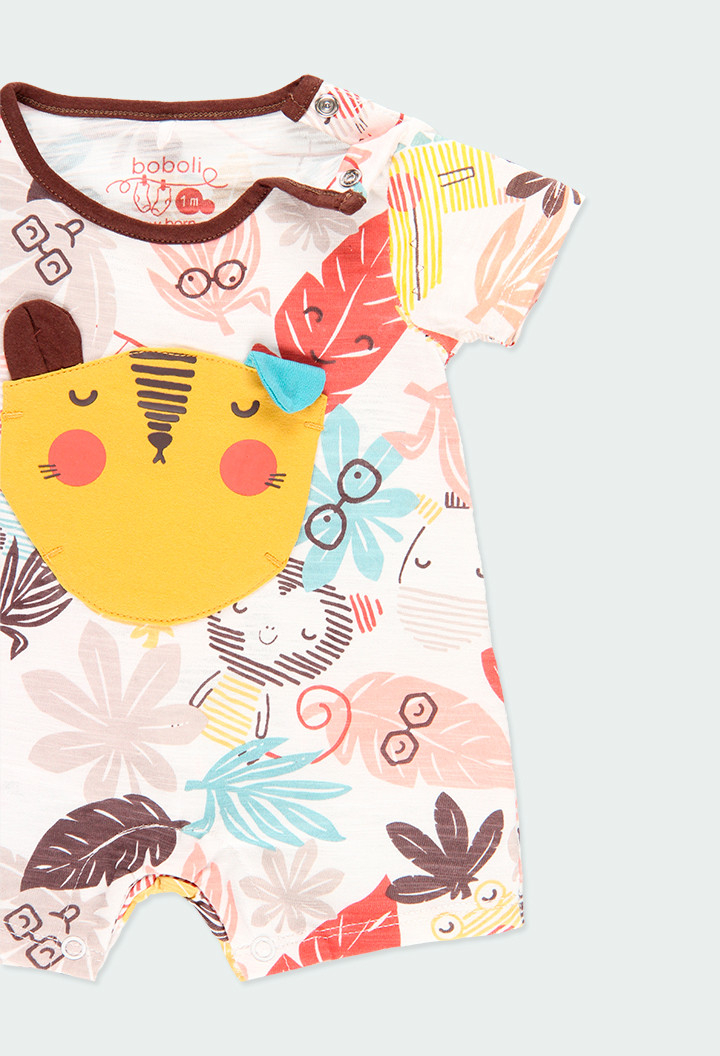Salopeta bebe baiat 0-24luni din bumbac organic certificat GOTS , animal print cu aplicatii cusute , multicolor, inchidere cu capse intre picioare si umar pentru o imbracare usoara.Compozitie : 100% bumbacBrand BoboliMade Spania