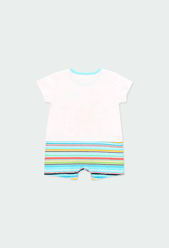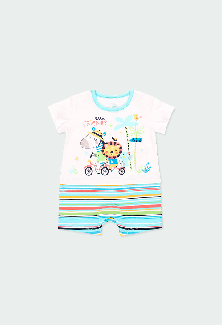 Salopeta vara bebe baiat din bumbac organic certificat GOTS, multicolor, animal print, dungi , inchidere cu capse intre picioare si umar.Brand BoboliMade Spania