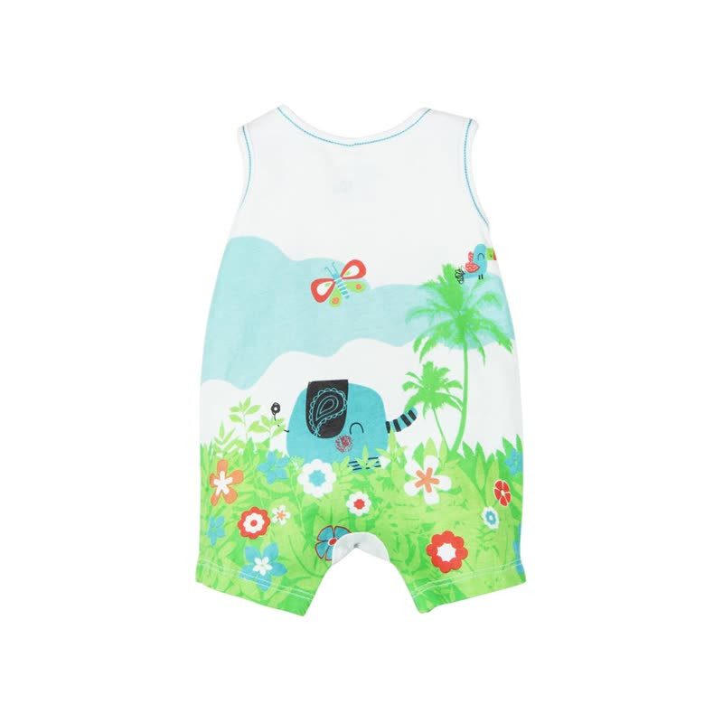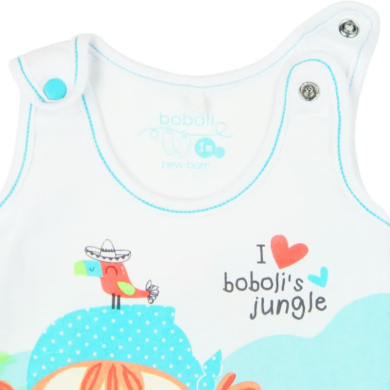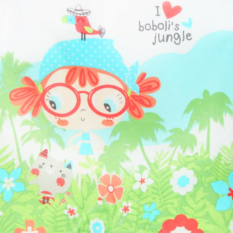 Salopeta bebe fetita fara maneca, deschidere intre picioare si pe umar, imprimeu vesel, 100% bumbac moale si placut.Brand BoboliMade Spania