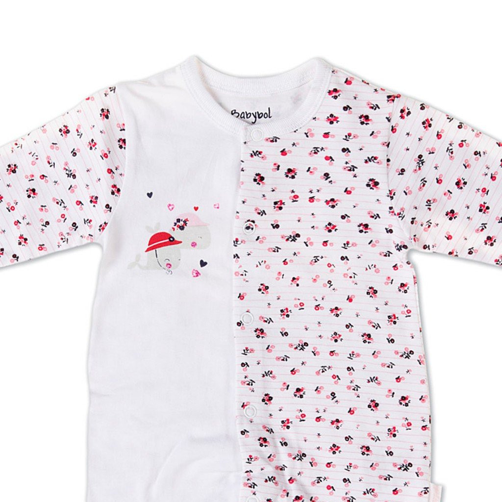 Salopeta nou nascut din bumbac pentru fetita, imprimeu floricele, inchidere pe fata  si intre picioare cu capse, bumbac moale .