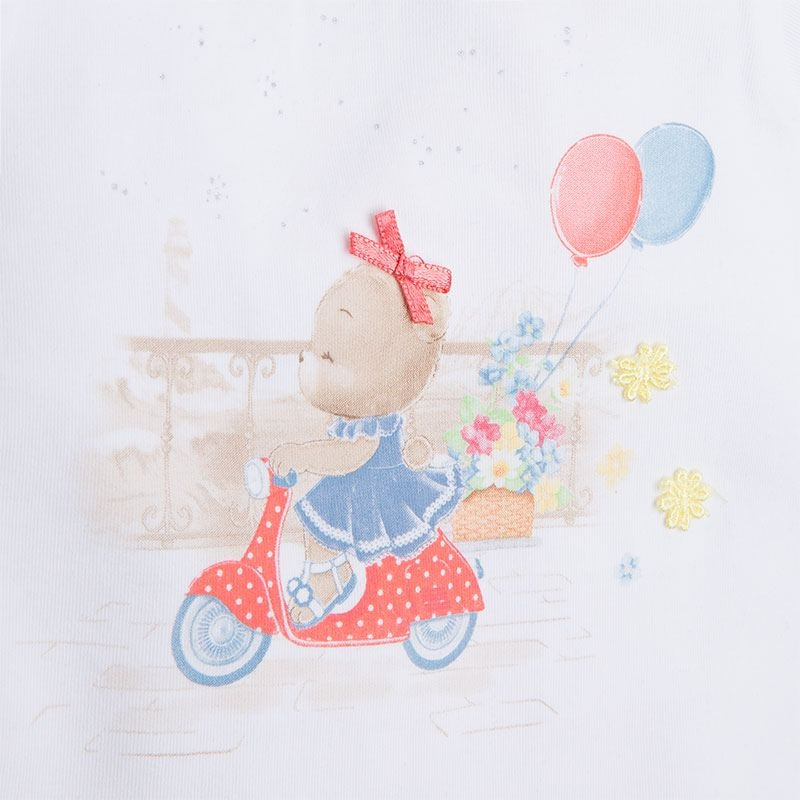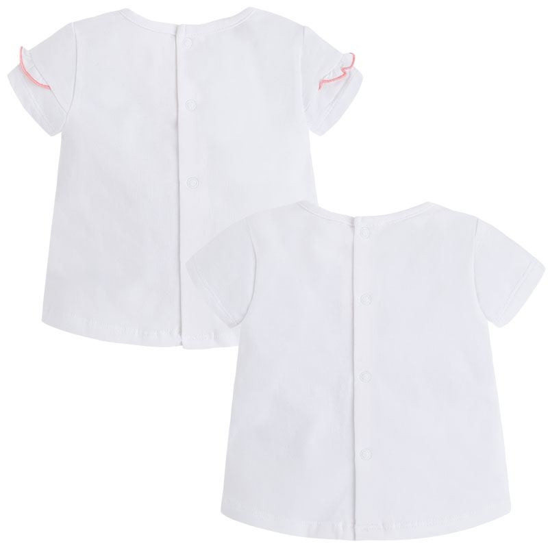 Set tricouri cu maneca scurta pentru fetite 0-12luni, marca Mayoral, confectionat din bumbac cu putin elastan, prin dgital pe fata.