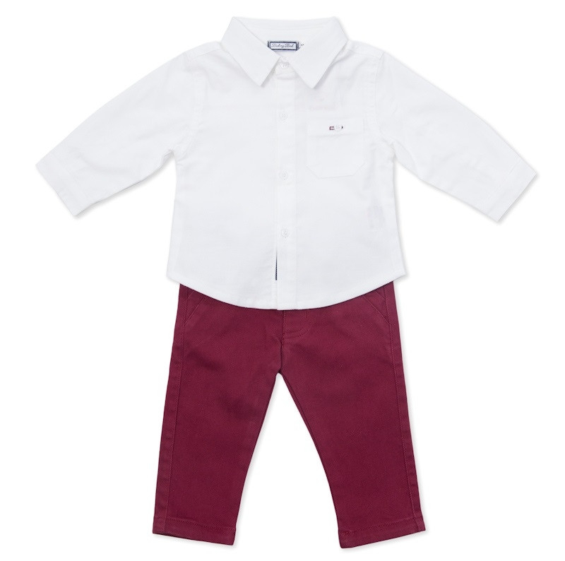 Set elegant pentru baieti de la Babybol , compus din camasa alba cu maneca lunga din bumbac 100% si pantaloni lungi, reglabili in talie, buzunare pe fata.Made Spania