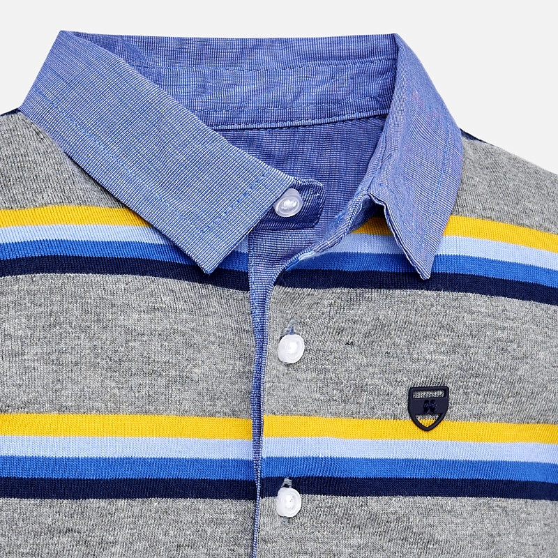 Tricou polo pentru baieti cu maneca lunga, din bumbac, decorat cu dungi orizontale, brand Mayoral.