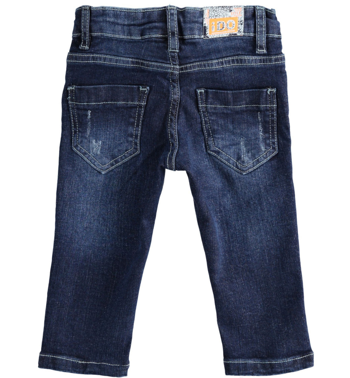 Blugi pentru baieti din material bumbac strech, modelcu 5 buzunare, cusaturi de contrast, aspect putin uzat, reglabil in talie, deschidere in fata cu fermoar si nasture. Brand iDO Italia.