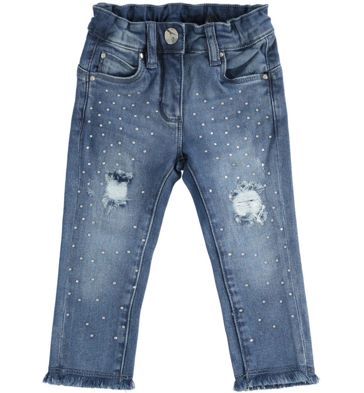 Blugi fetite, model trendy, slim fit, strasuri aplicate, buzunare laterale, material putin strech, reglabil in talie.Brand iDOMade Italia