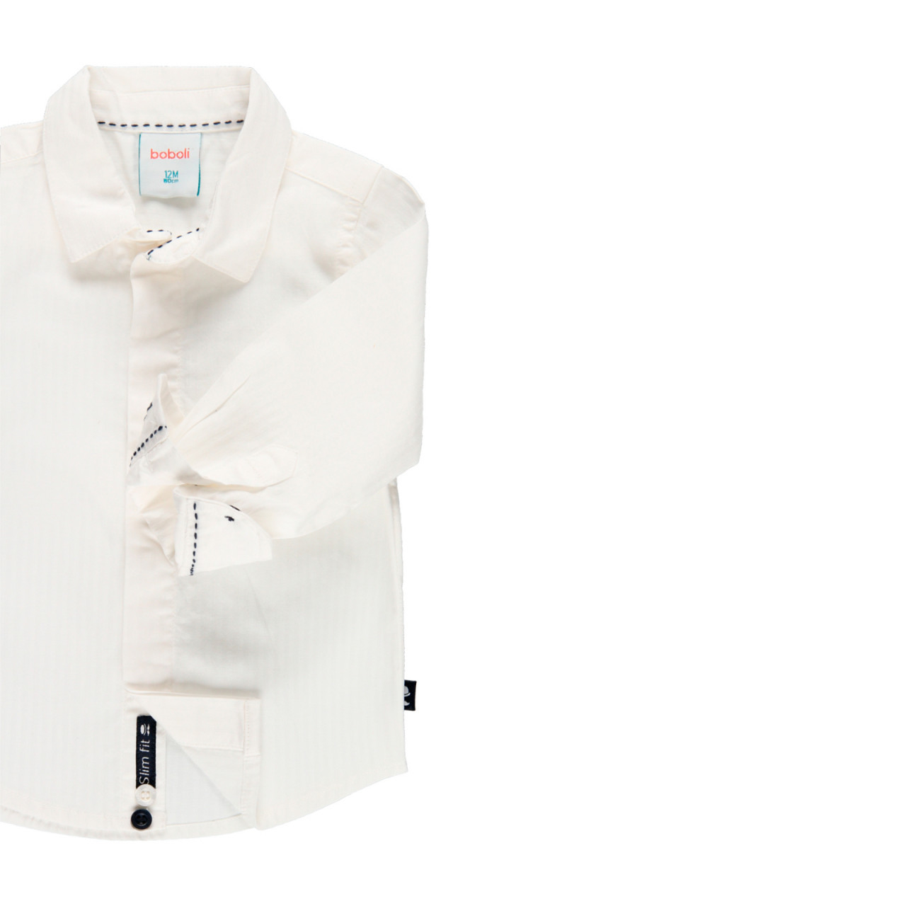 Camasa bebe baieti alba din gama CHIC Boboli, bumbac 100%, model cu dungulite fine, papion navy, maneca lunga.Compozitie : 100% bumbacBrand Boboli Barcelona
