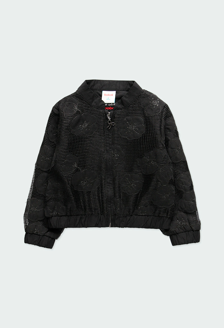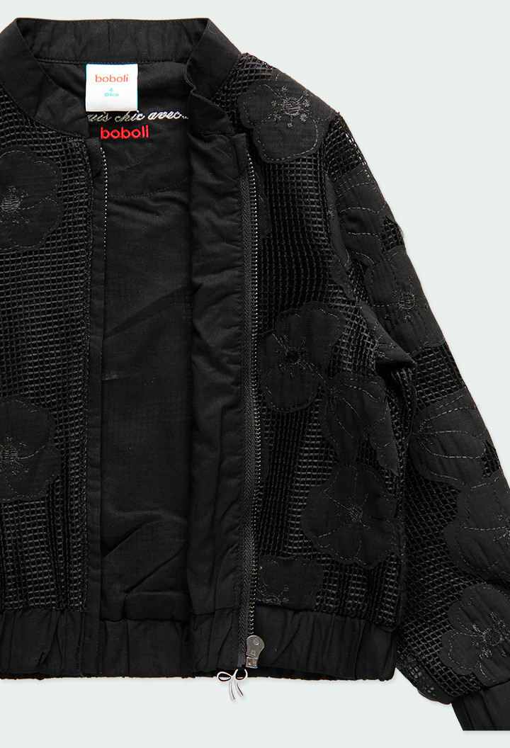 Geaca fete 8-16 ani broderie neagra cu captuseala bumbac subtire, ideala primavara si vara, inchidere cu fermoar. Un accesoriu superb!Brand Boboli